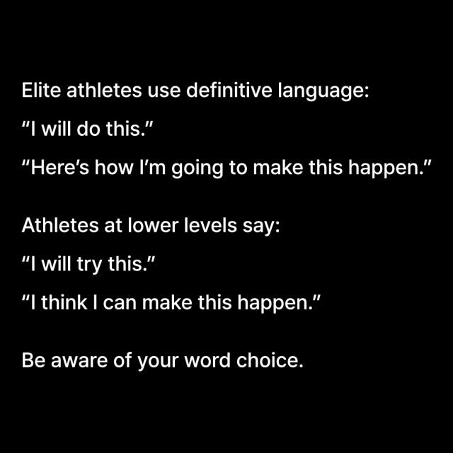 Written Blog#63 - How Elite Athletes Speak DifferentlyPaul YuNov 07, 2024Share2024/11/7 ThursdayTime to eliminate “probably,” “maybe,” “think I could,” and “try” from my vocabulary.Here’s the video I learned this from: